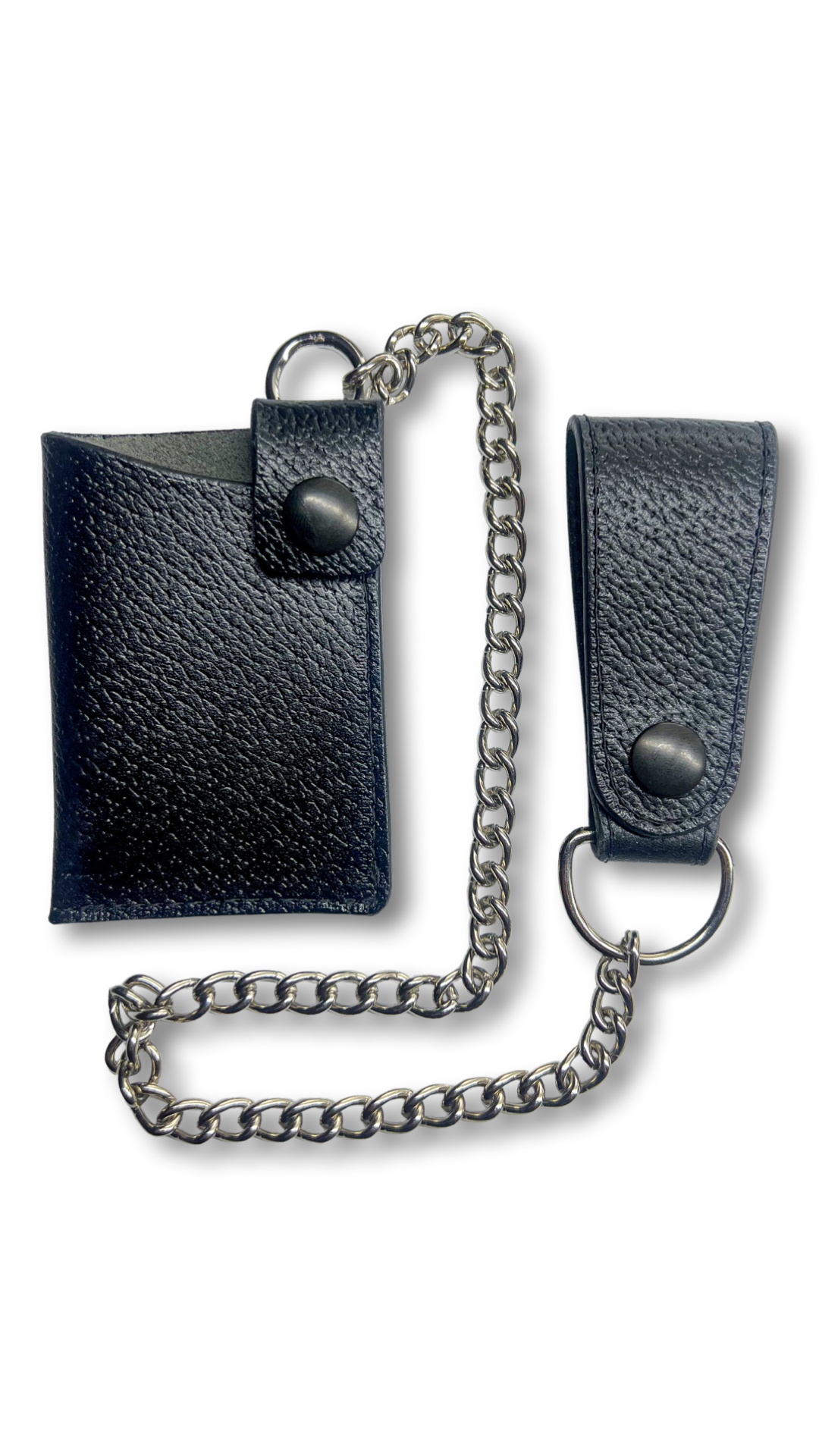 Our cardwallet & keyfob combo secured with a chrome wallet chain to keep all your valuables at bay.